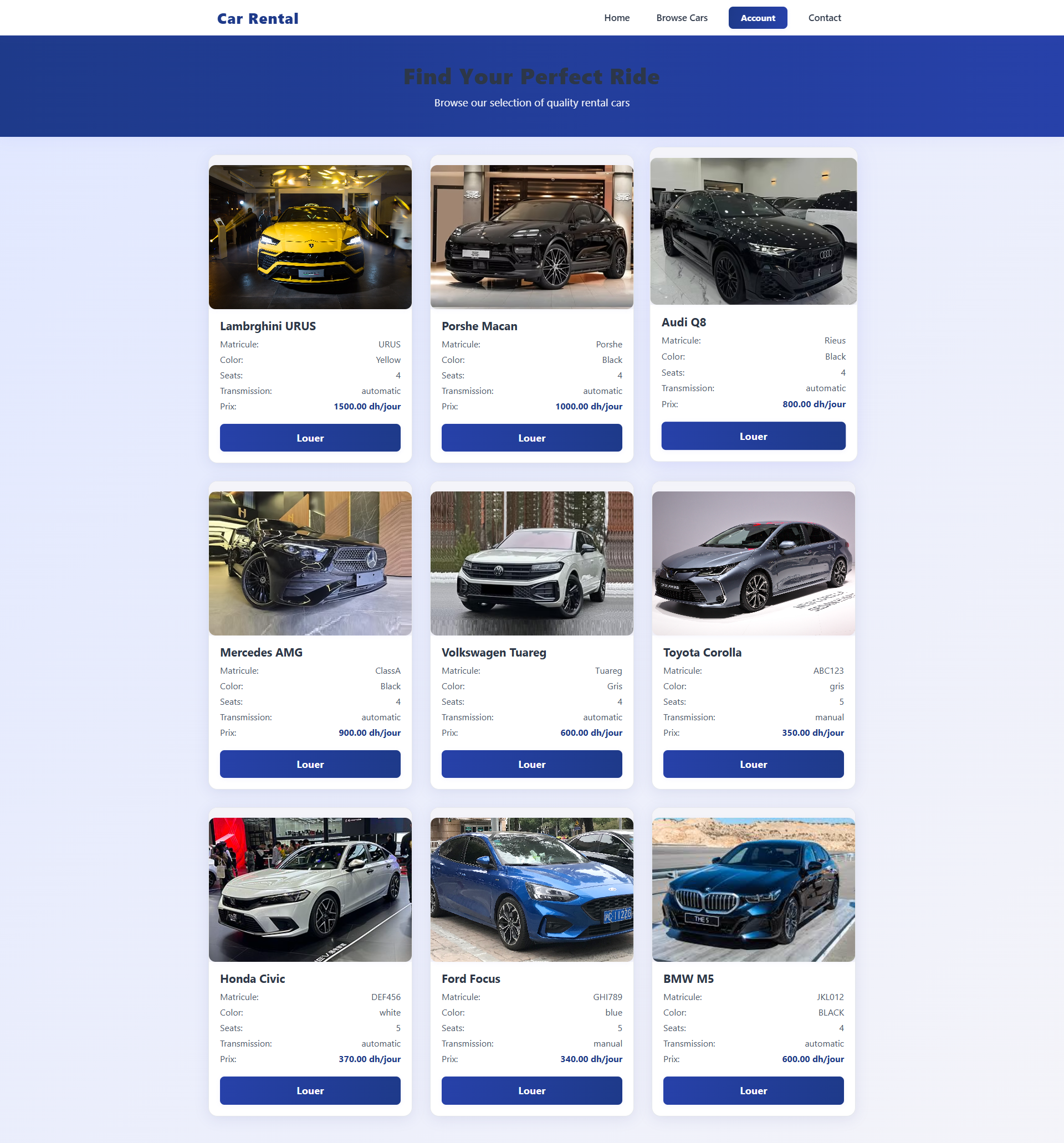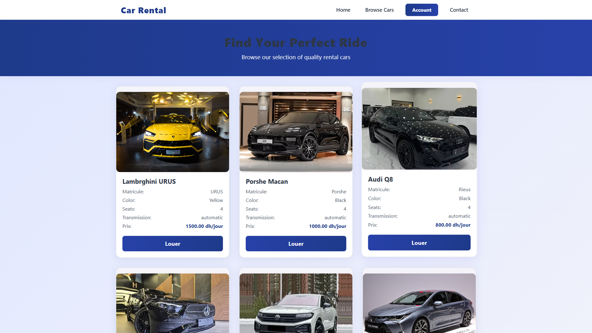 Comprehensive car rental management system with booking, inventory management, and customer portal functionality.