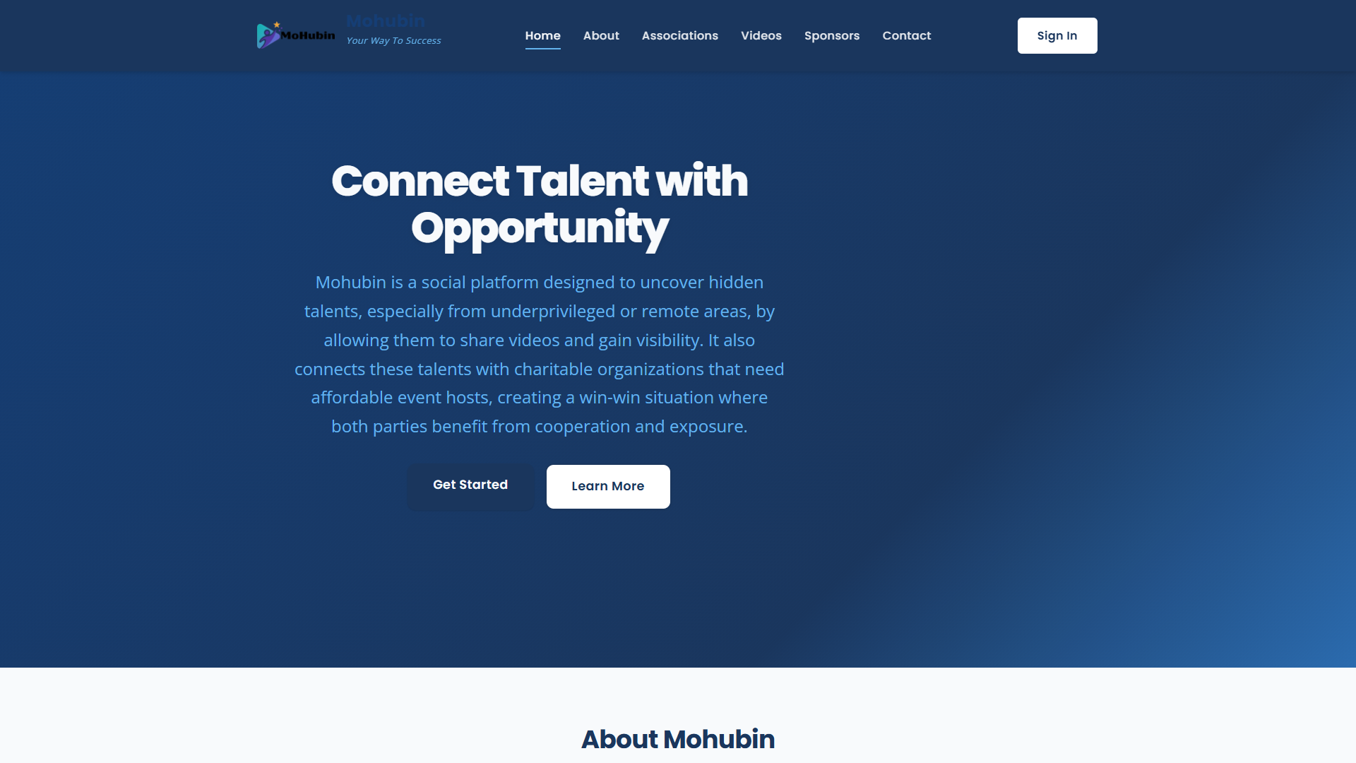 Social platform designed to discover hidden talents from underprivileged areas through video sharing and community engagement.
