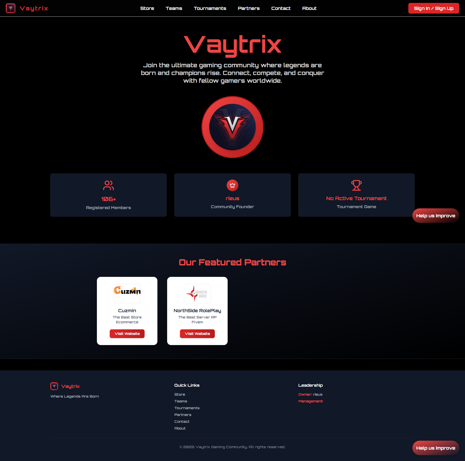 Full-stack gaming community platform with esports team management, tournaments, and player statistics.